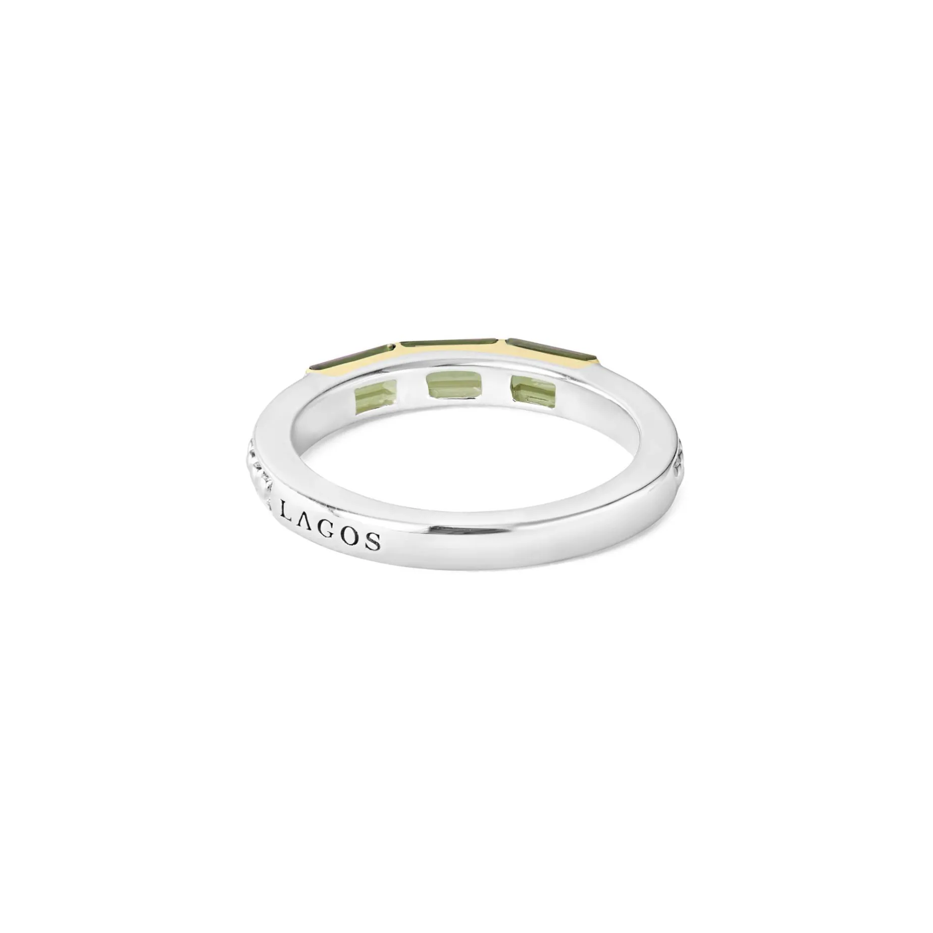 Three Green Tourmaline Gemstones Form This Stacking Ring Surrounded By Sterling Silver Caviar Beading.