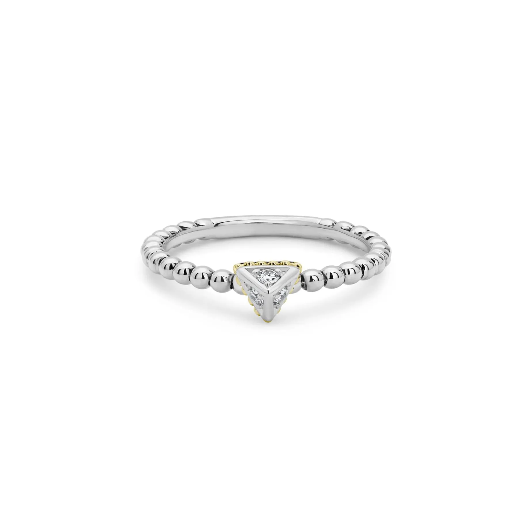Diamonds Form A Small Pyramid With 18K Gold Caviar Beading On This Sterling Silver Ring. Lagos Diamonds Are The Highest Quality Natural Stones.