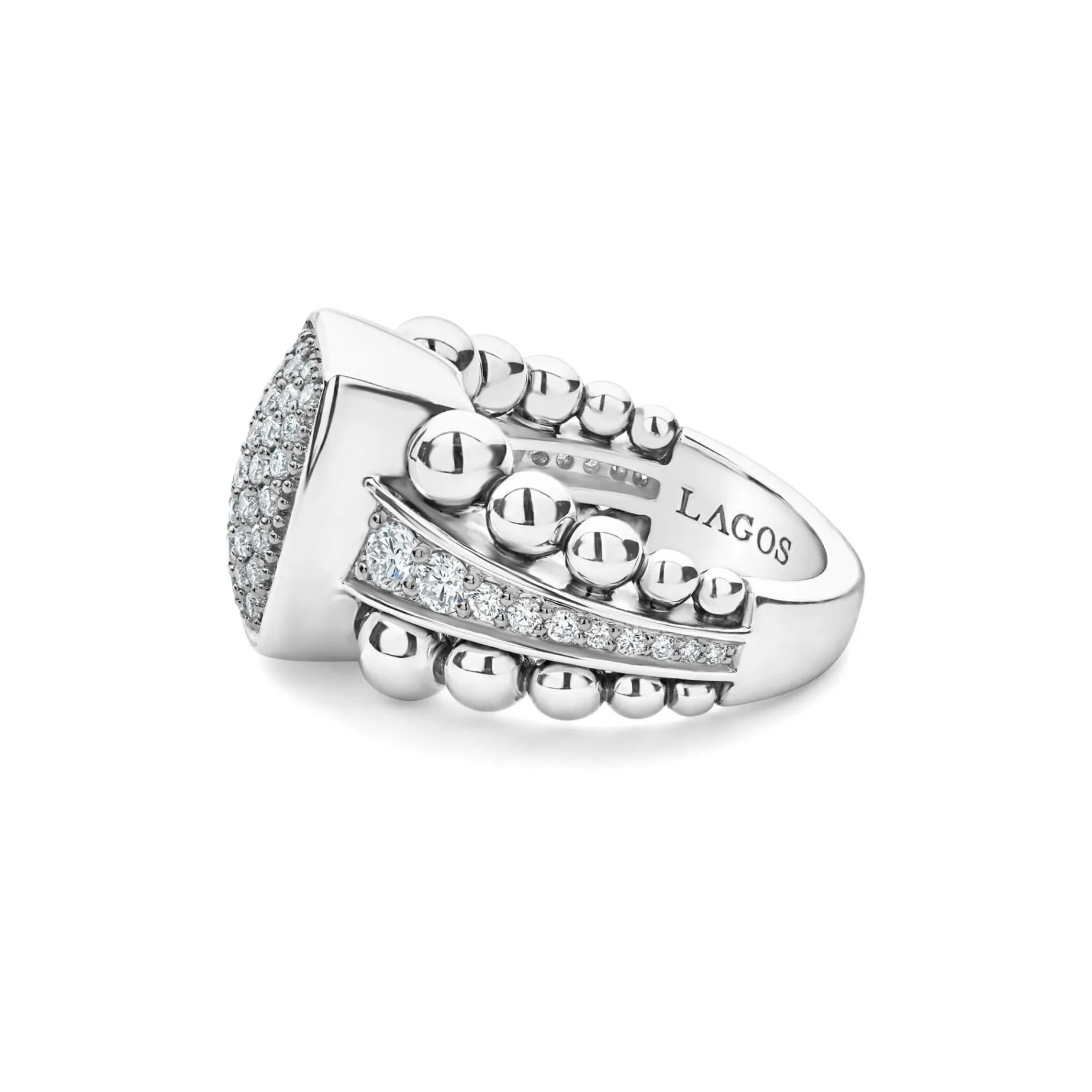 A Pavé Diamond Station Highlighted By A Band Of Sterling Silver Caviar Beading And Diamonds. Lagos Diamonds Are The Highest Quality Natural Stones.