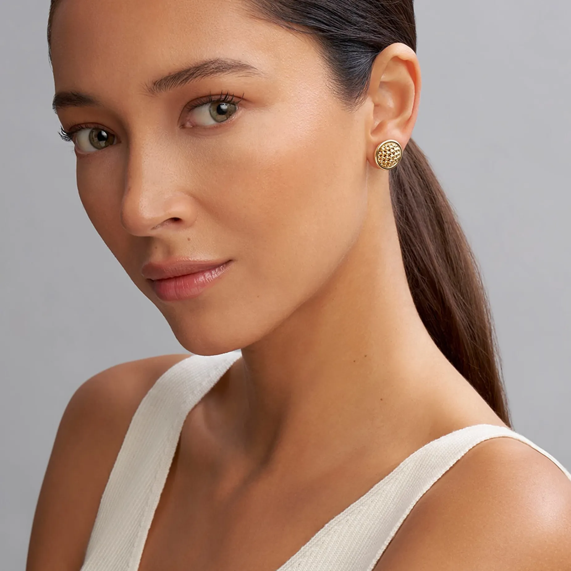 18K Gold Caviar Beading Surround By Gold Ceramic Detailing Form These Studs Earrings.