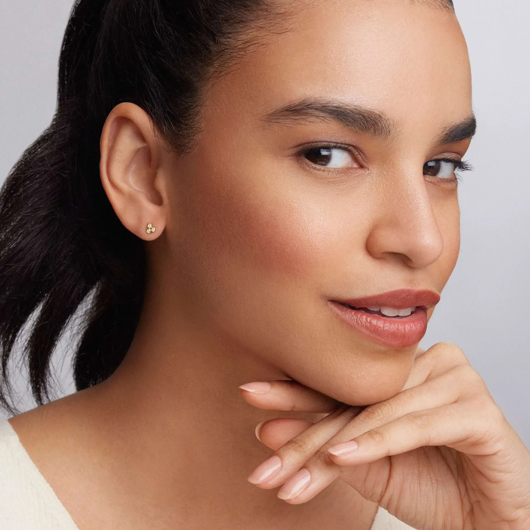 Diamonds And 18K Gold Form These Petite Triangle Stud Earrings. Lagos Diamonds Are The Highest Quality Natural Stones.
