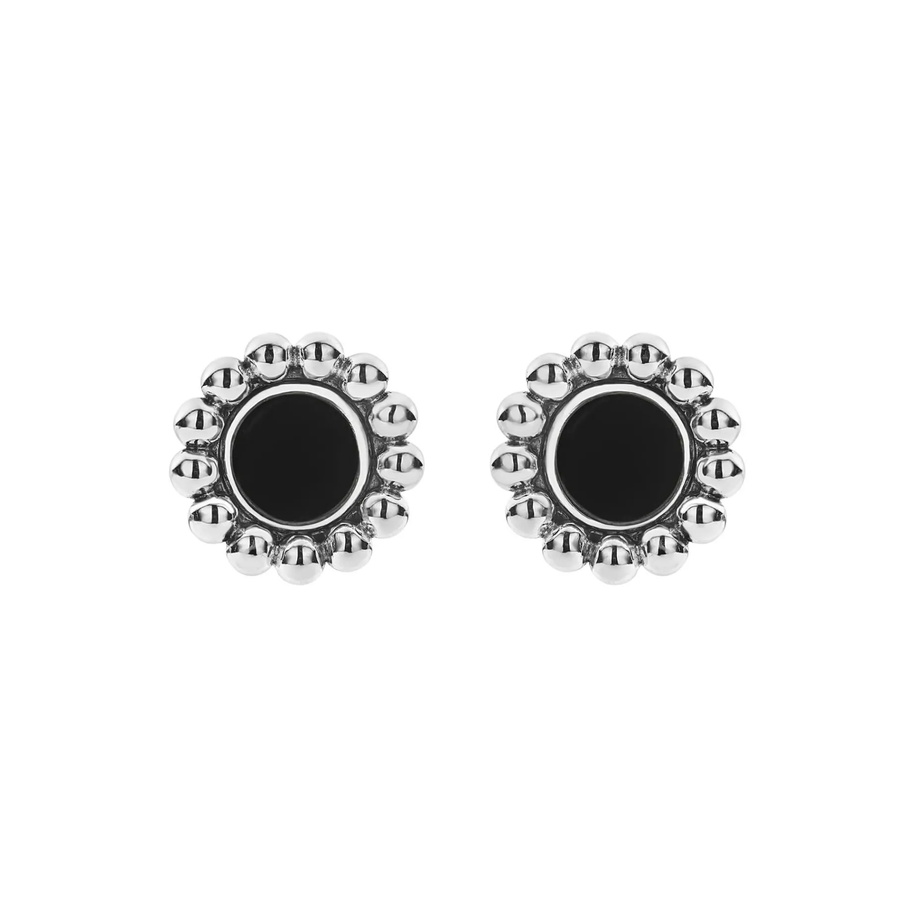 Onyx Gemstone Circle Earrings Framed By Caviar Beading.
