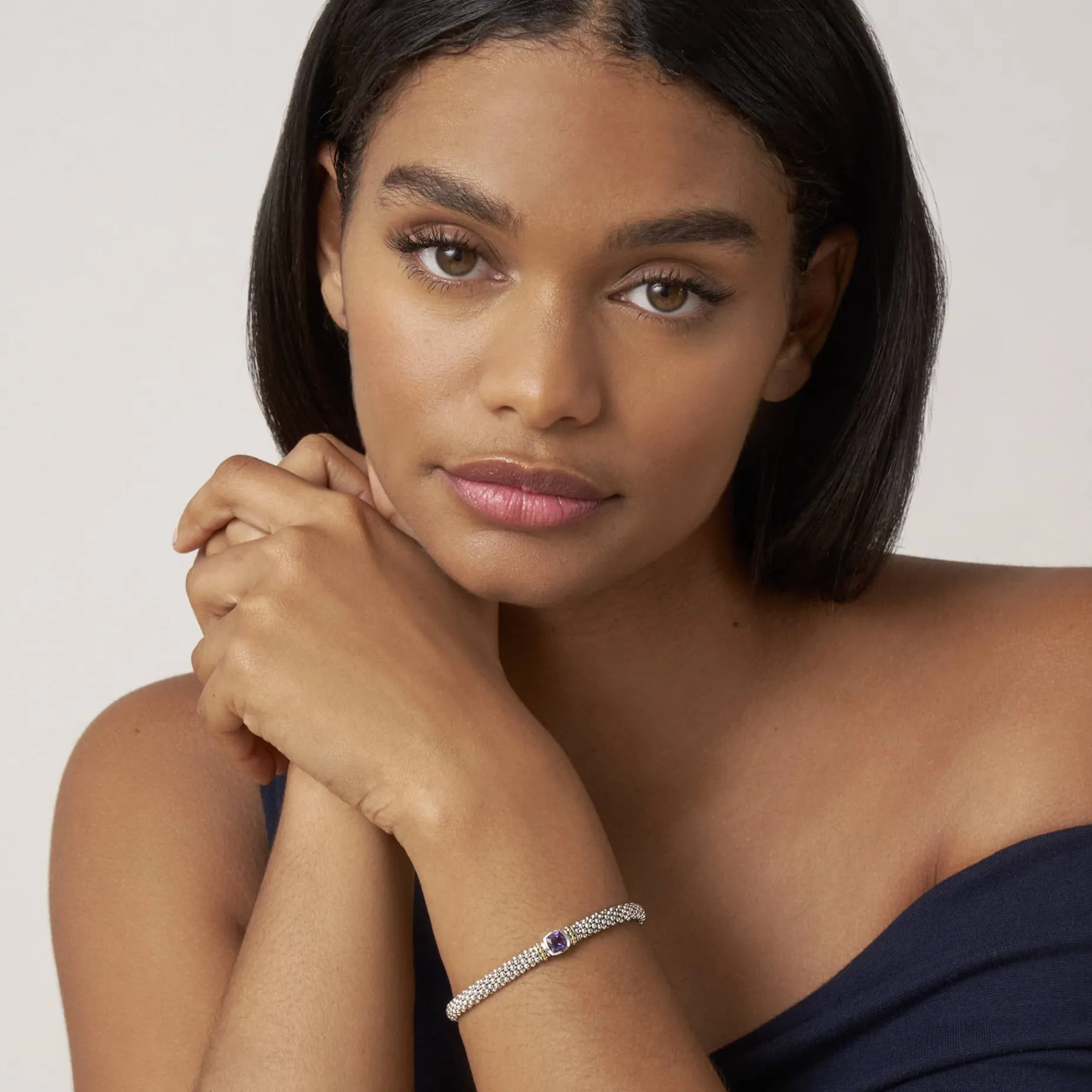 A Lagos Exclusive. An Amethyst Gemstone And Sterling Silver Caviar Beading With 18K Gold Detailing Forms This Bracelet.