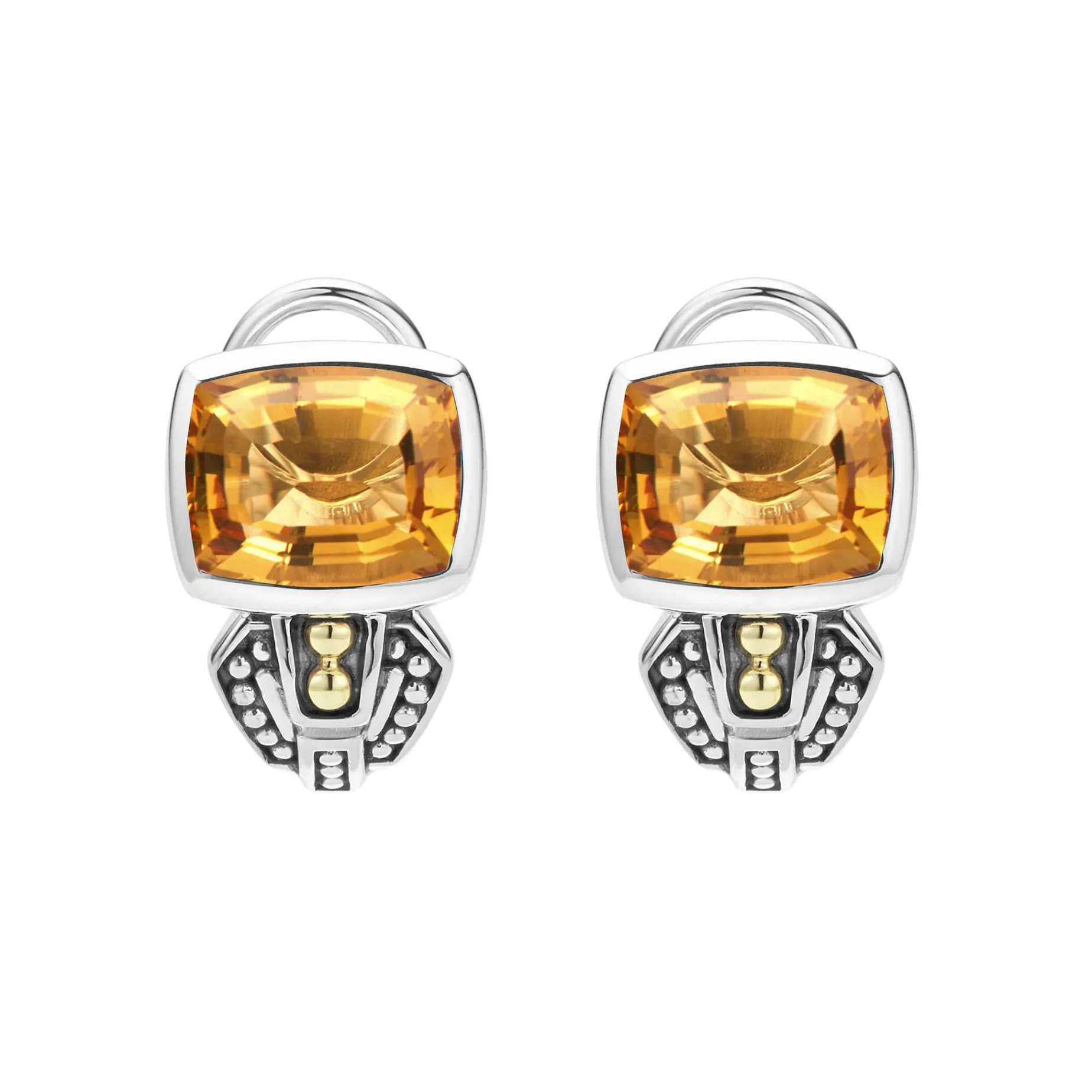 Two-Tone<LAGOS Bezel-Set Citrine Earrings