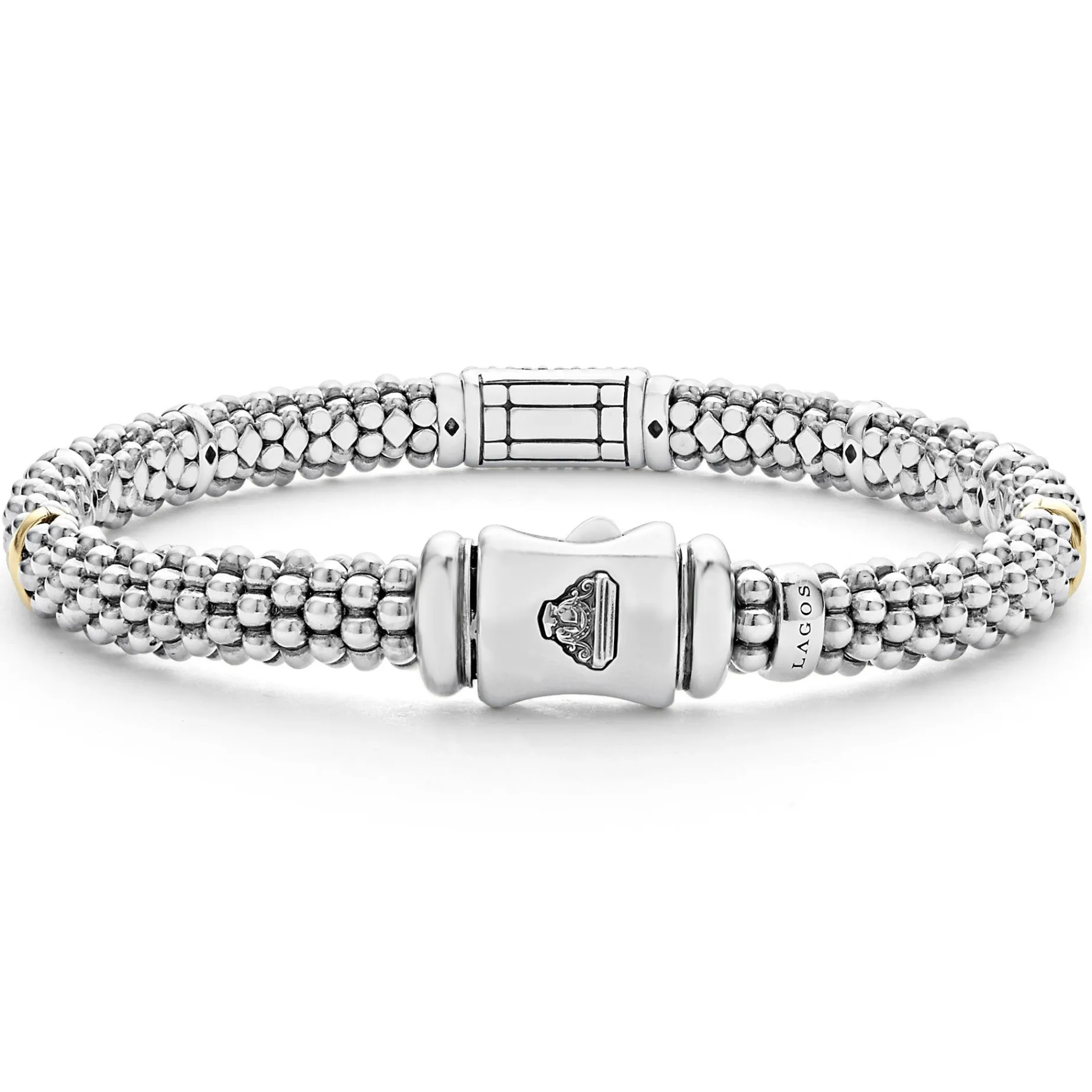 Ten 18K Gold Stations Highlight This Sterling Silver Caviar Beaded Bracelet With A Pavé Station Of Blue Sapphire Precious Gemstones.