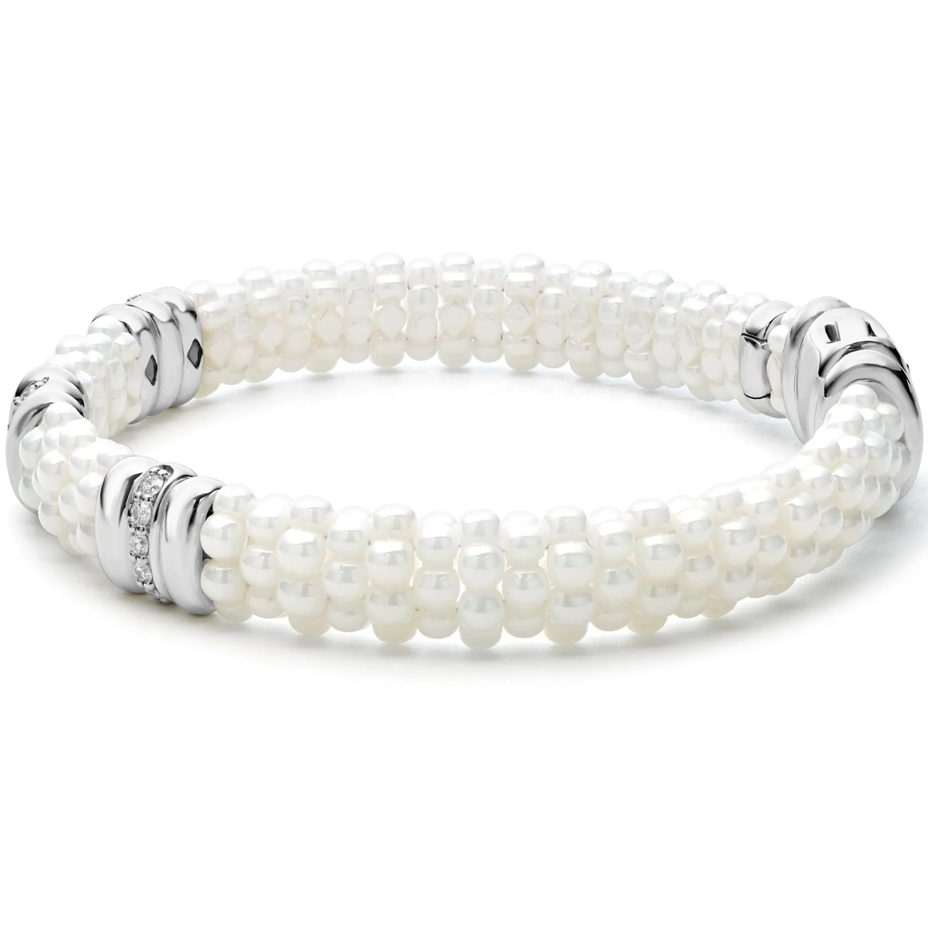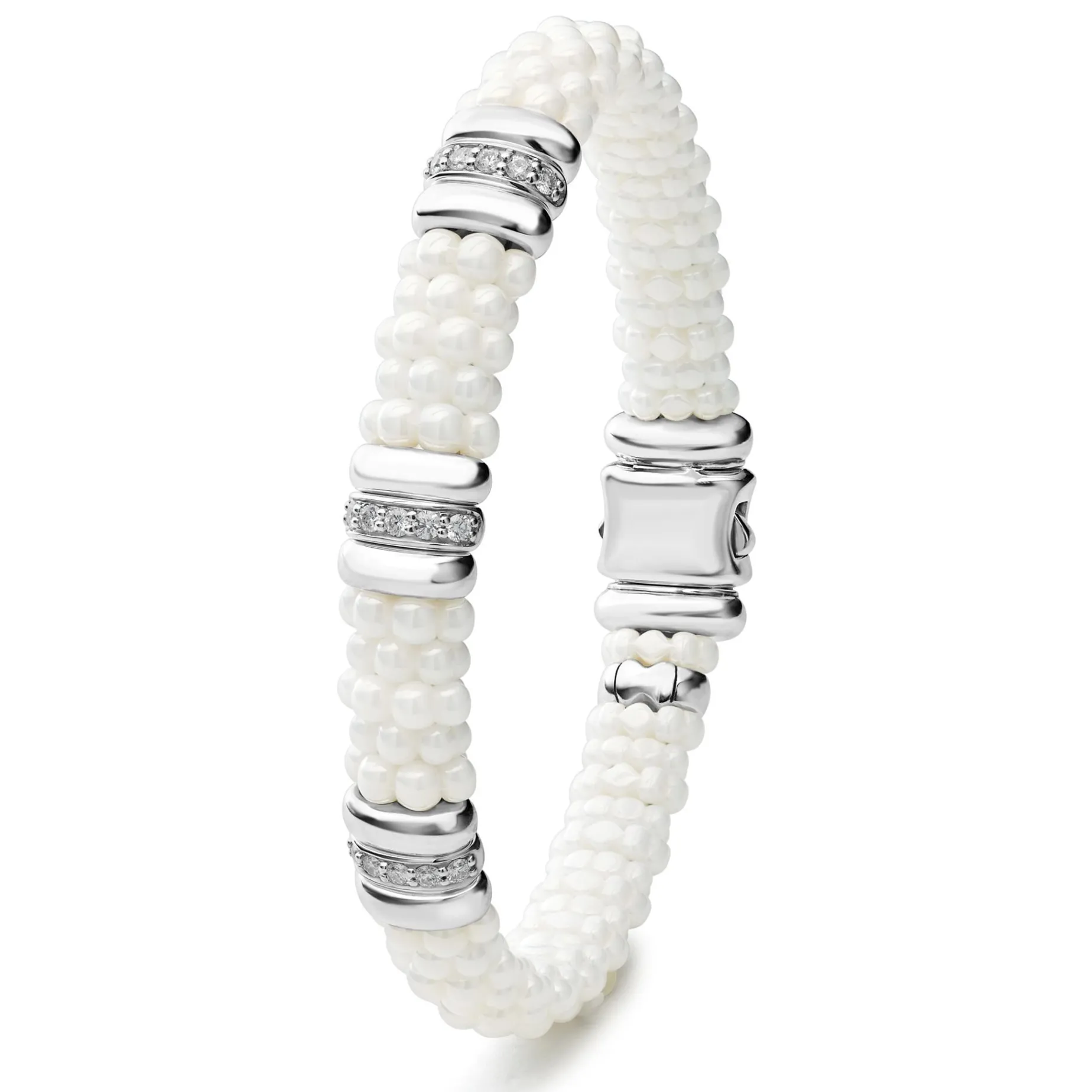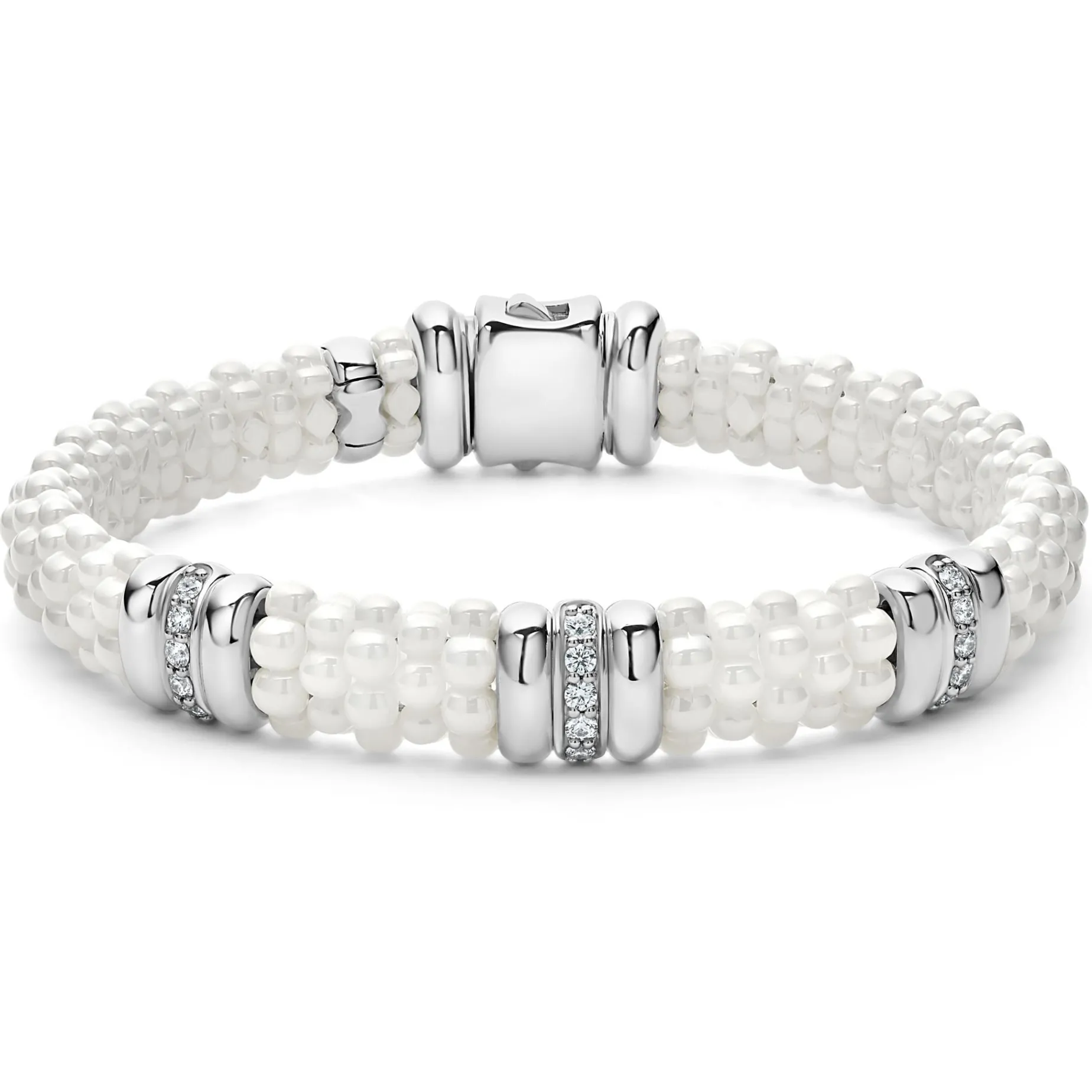 A Lagos Exclusive. Three Diamond And Sterling Silver Stations Set In A White Ceramic Beaded Bracelet.