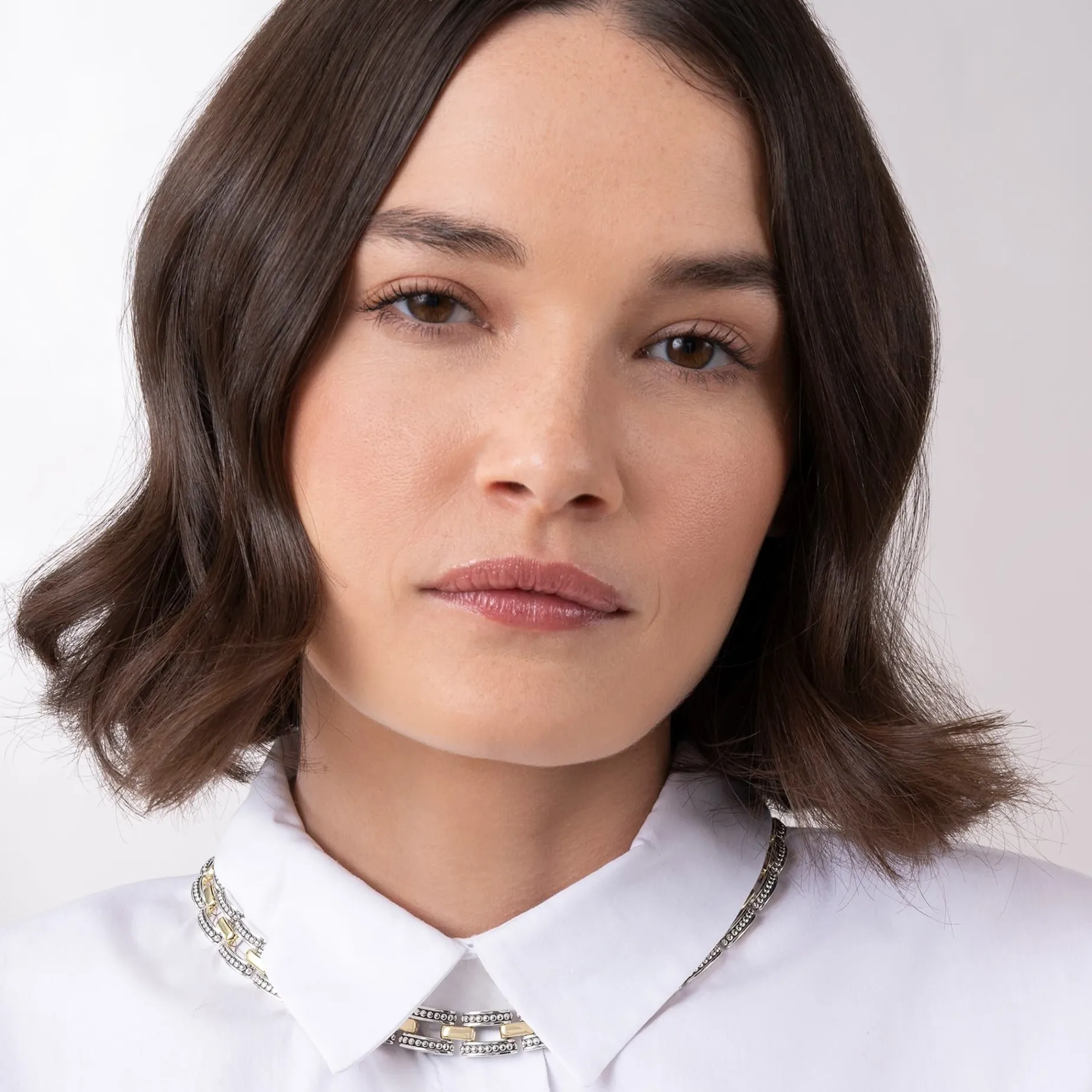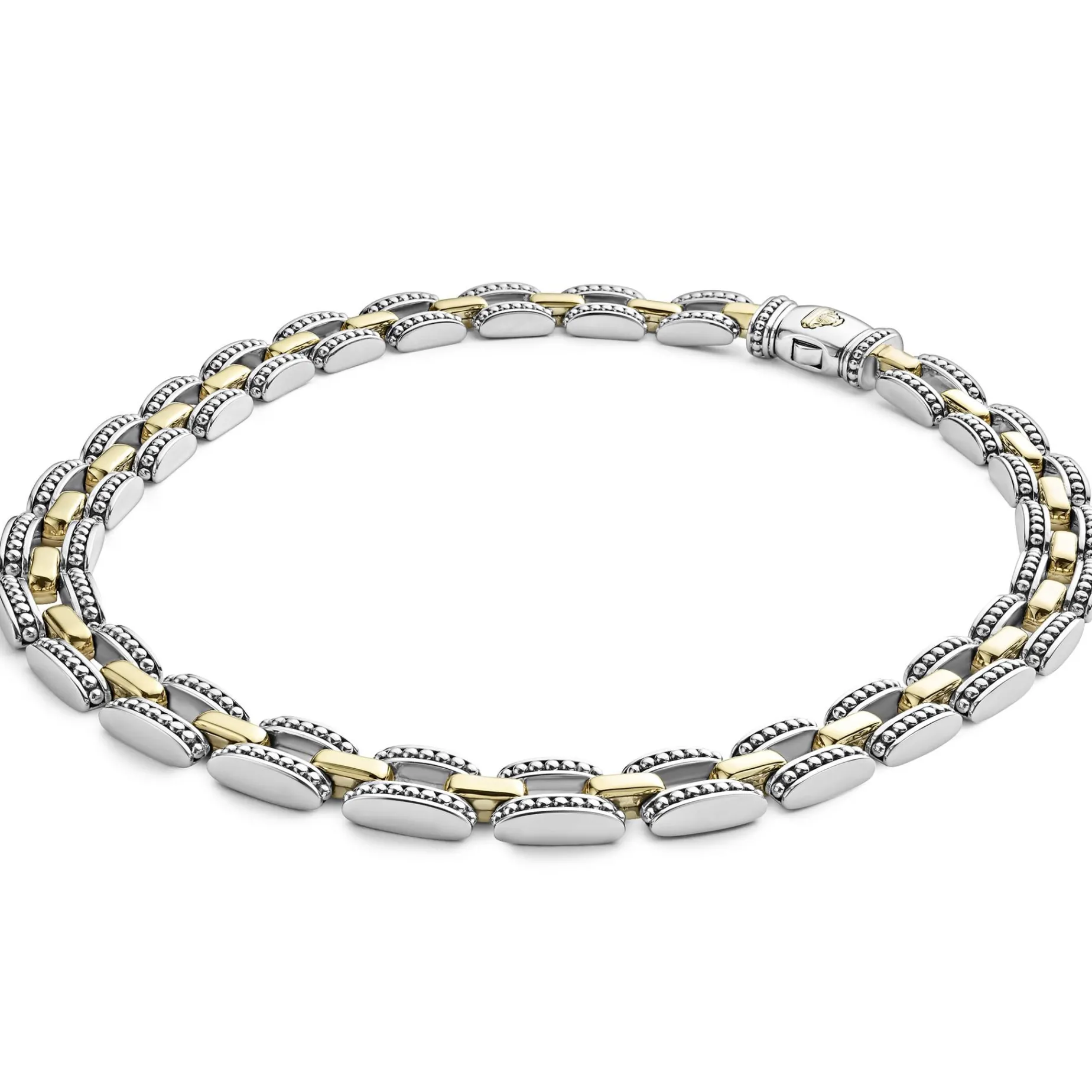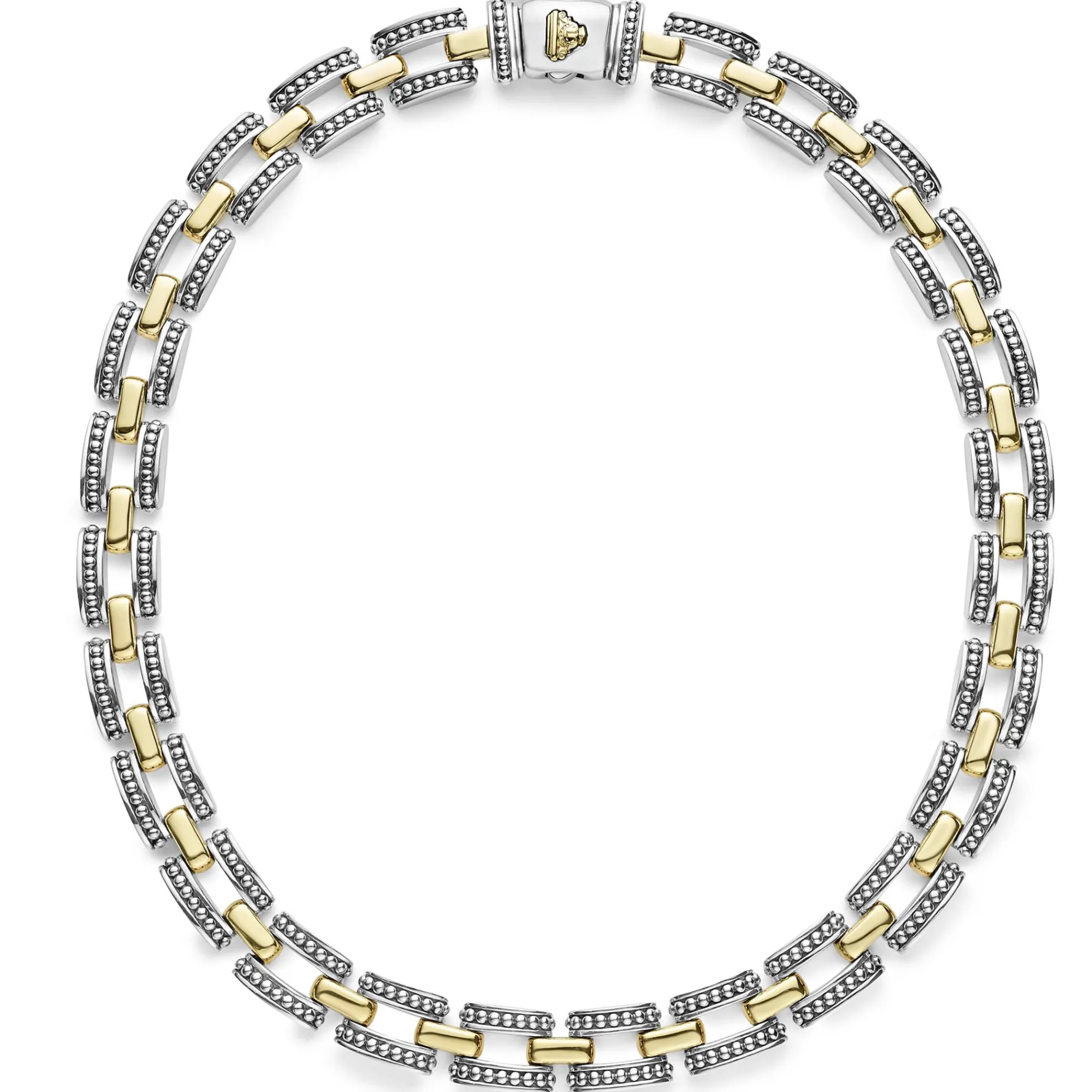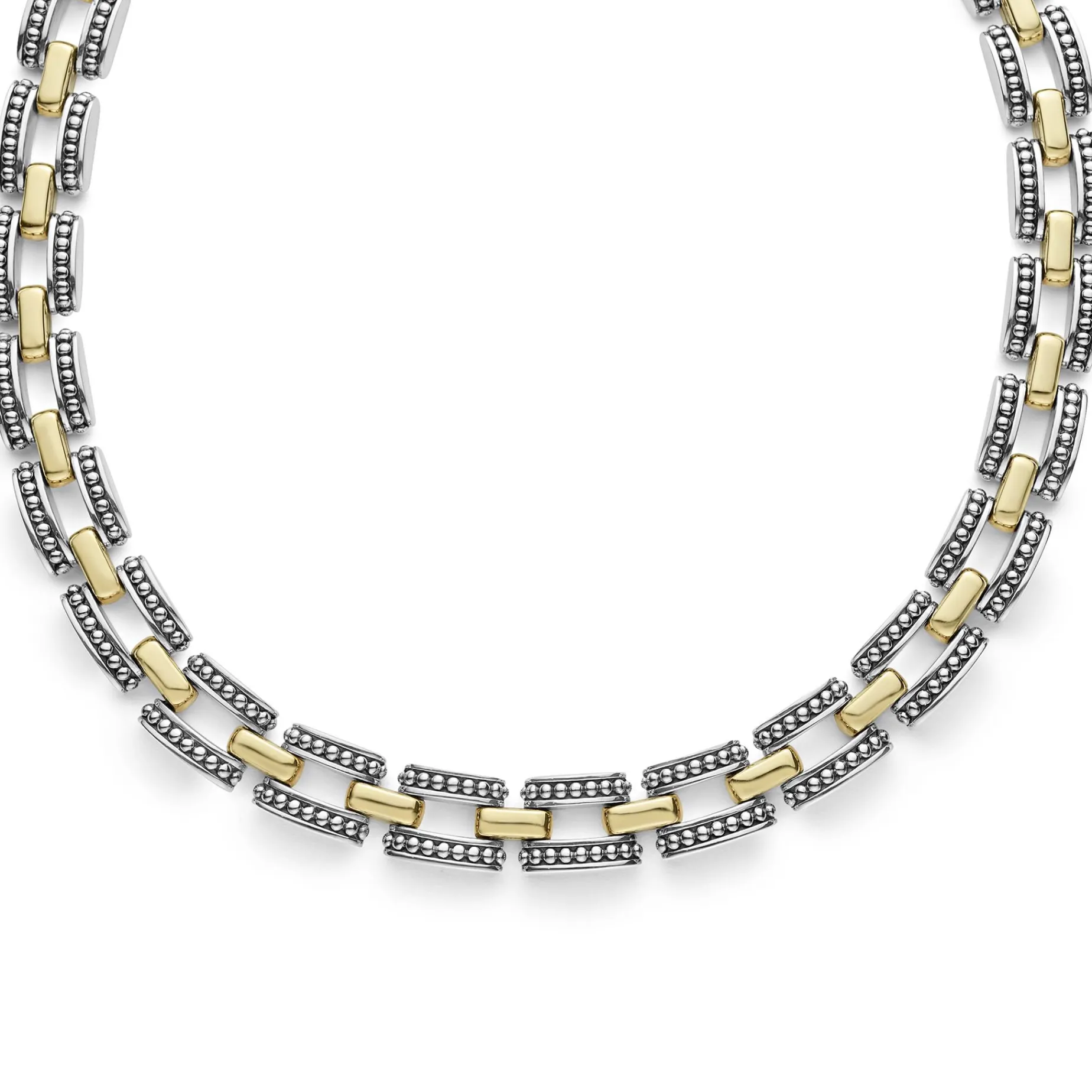 18K Gold And Sterling Silver Caviar Beading Forms This Statement Collar Necklace.