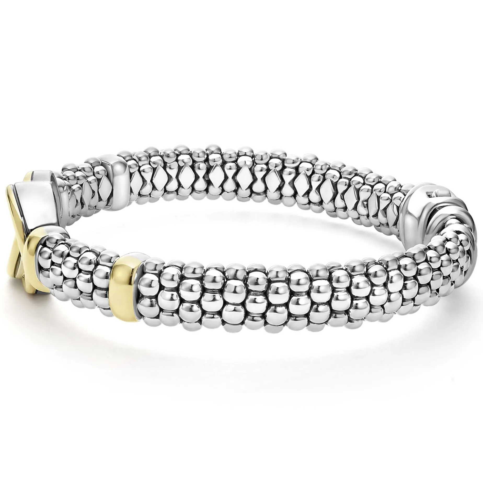 18K Gold And Sterling Silver Accents Caviar Beading To Form This Signature Interlocking Bracelet.