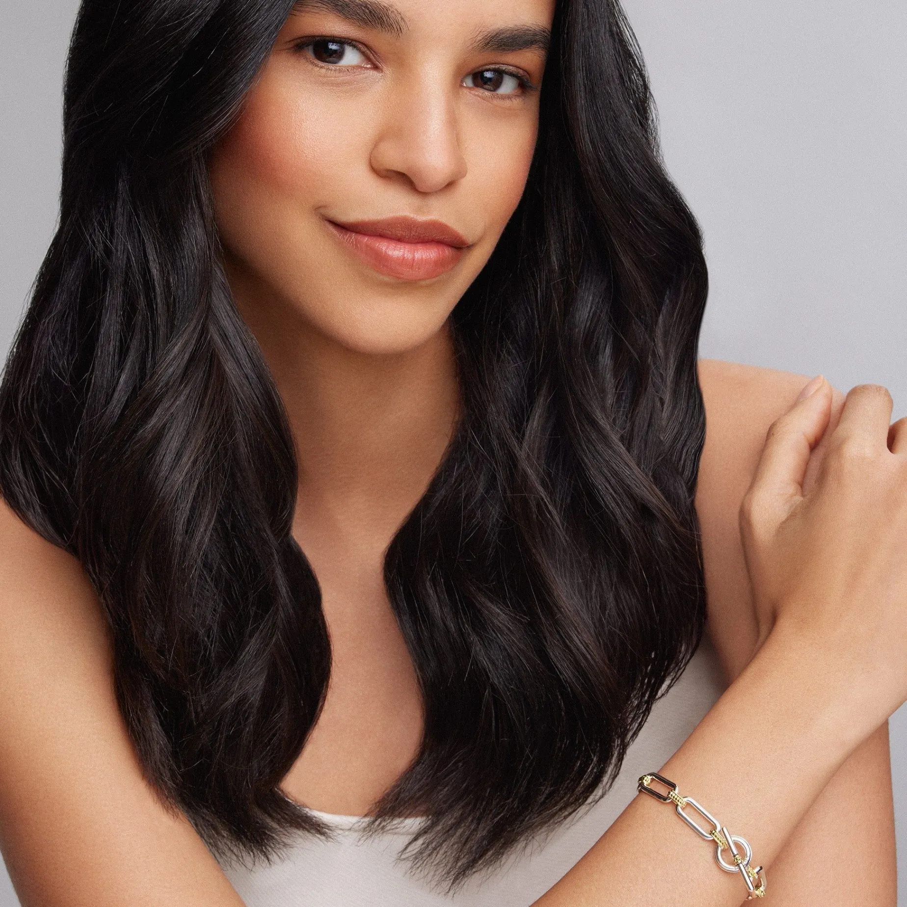 Sterling Silver & 18K Gold Variations Of Caviar Beading & Fluting Elements Form This Timeless Link Bracelet.