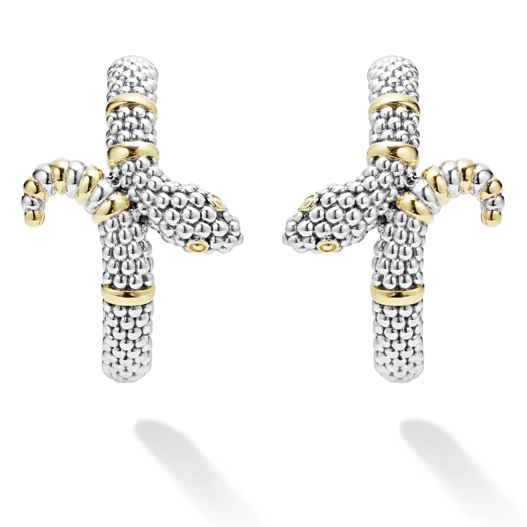 Sterling Silver Caviar Beading Highlighted By 18K Gold Stations Form These Unique Snake Hoop Earrings.