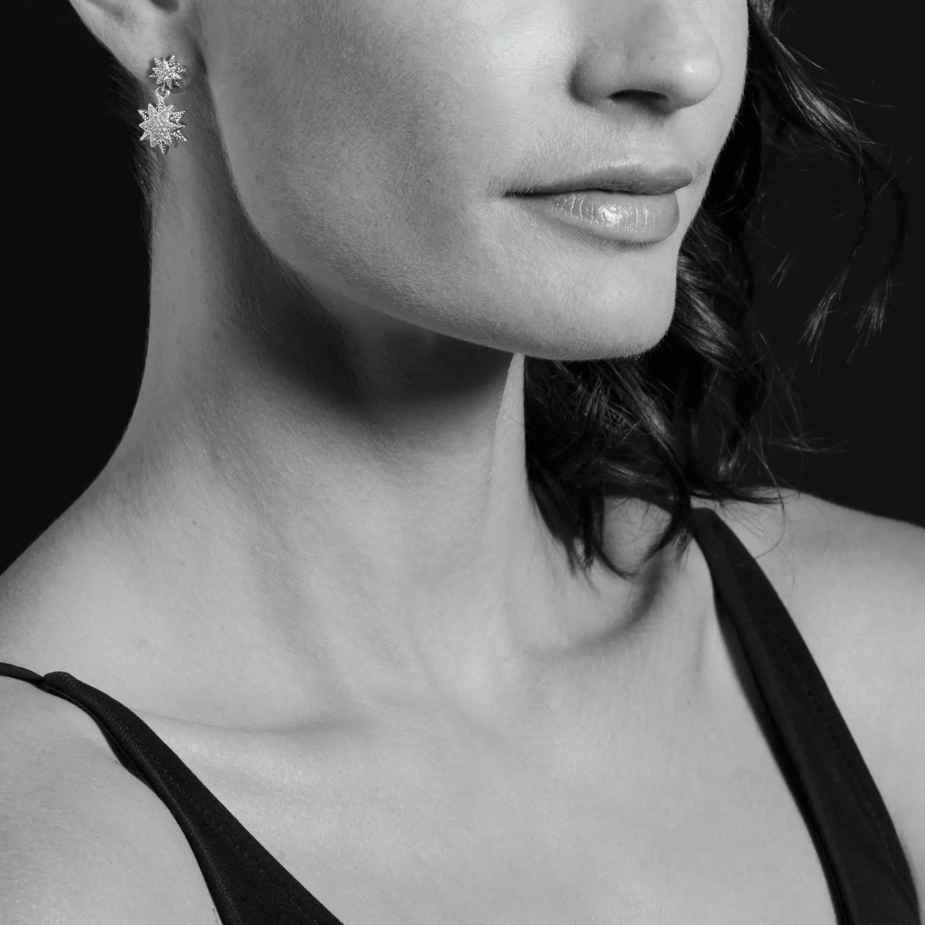 Diamonds, 18K Gold, And Sterling Silver Caviar Beading Form These Double Star Motif Drop Earrings. Lagos Diamonds Are The Highest Quality Natural Stones.