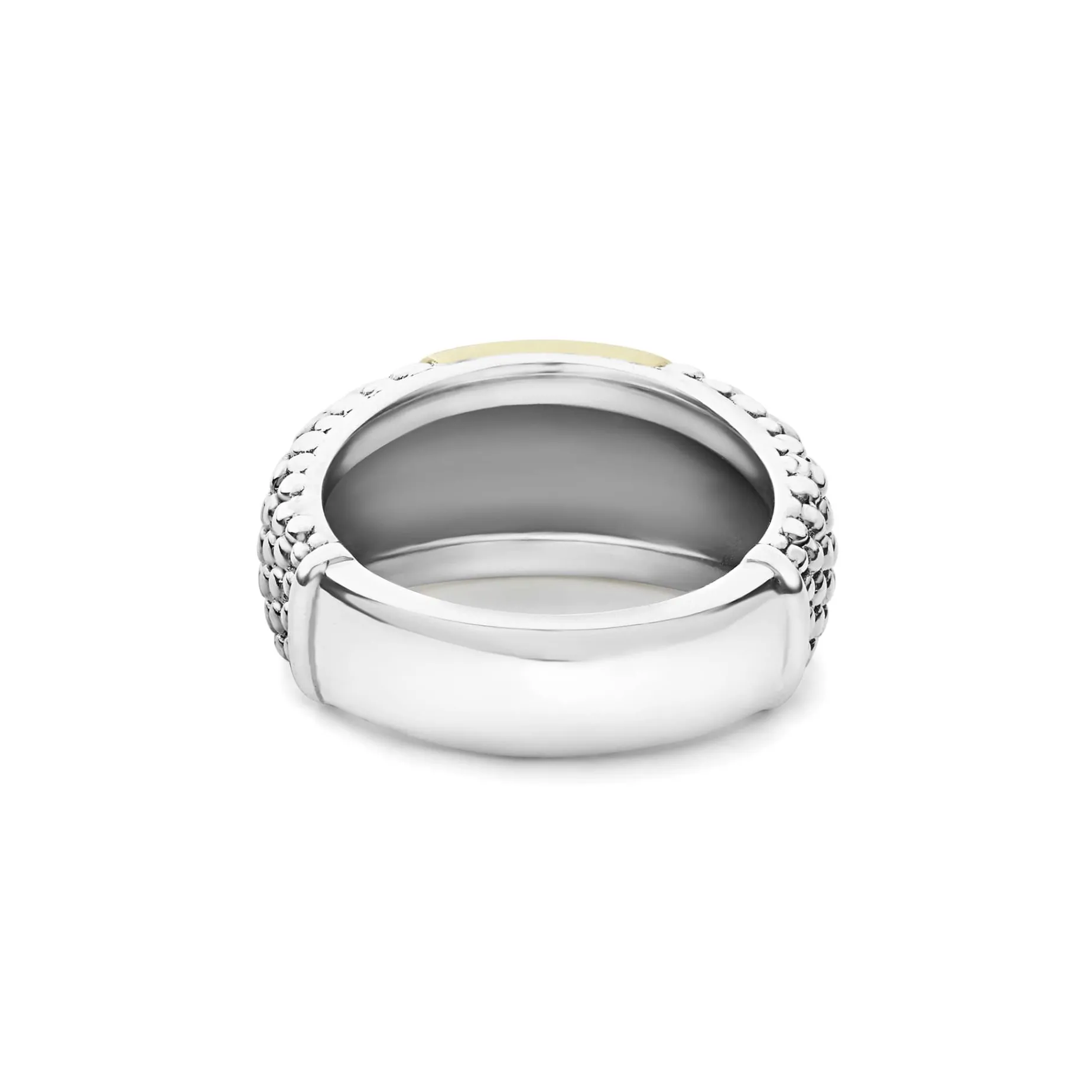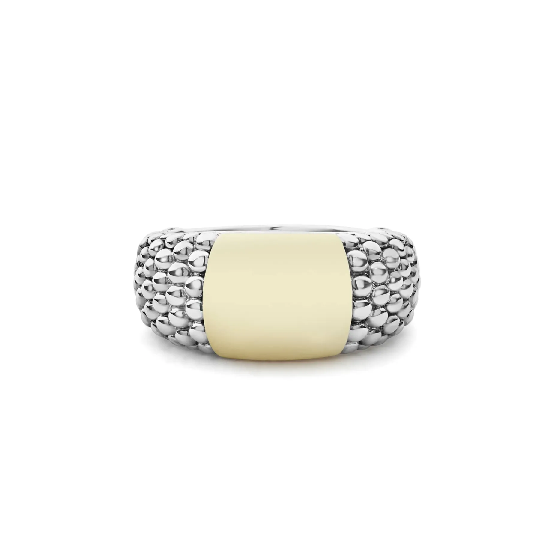 A Smooth Station Of 18K Gold Set By Sterling Silver Caviar Beading.