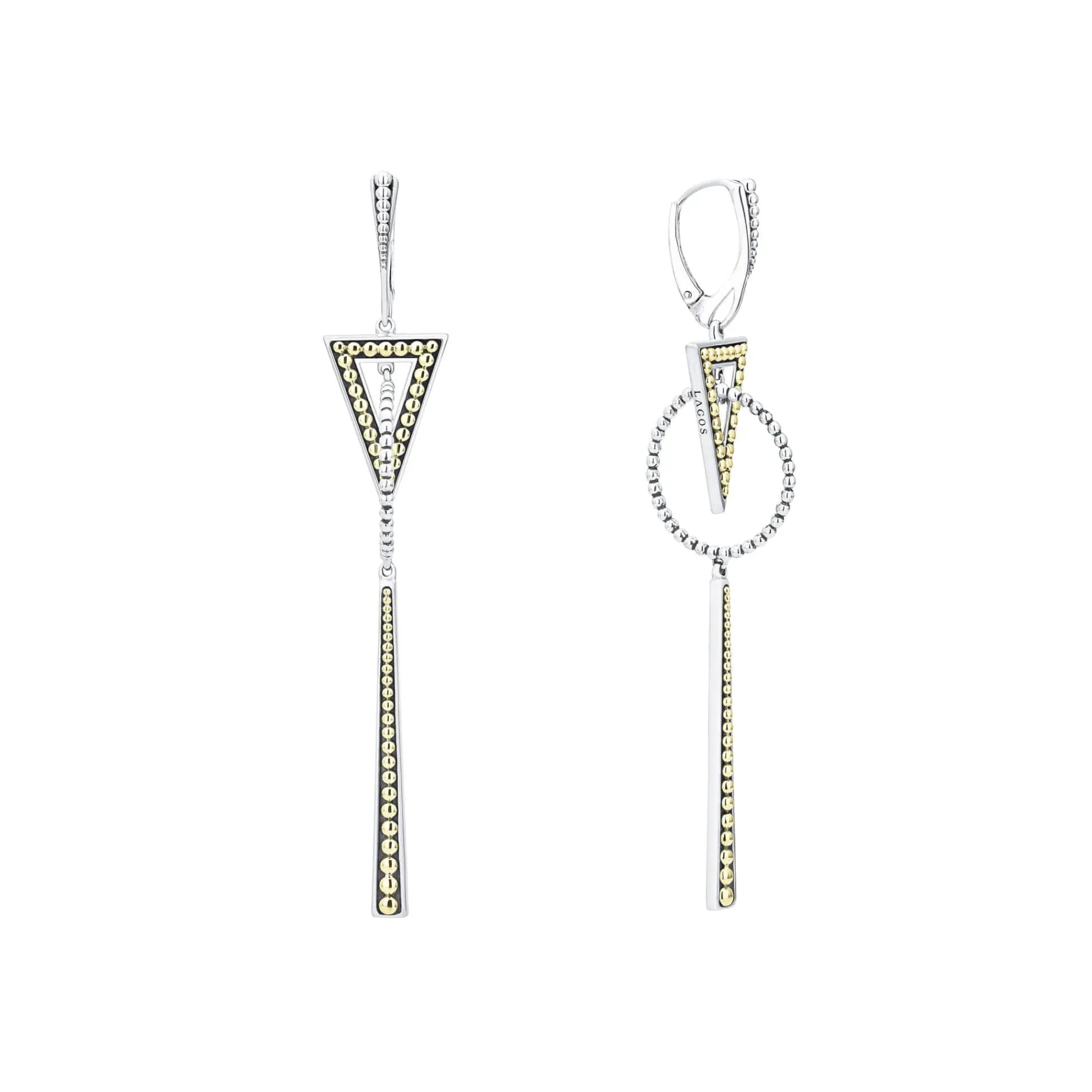 Caviar 18K Gold And Sterling Silver Triangle, Circle And Linear Drop Earrings. Lightweight And Easy To Wear With Other Signature Designs.