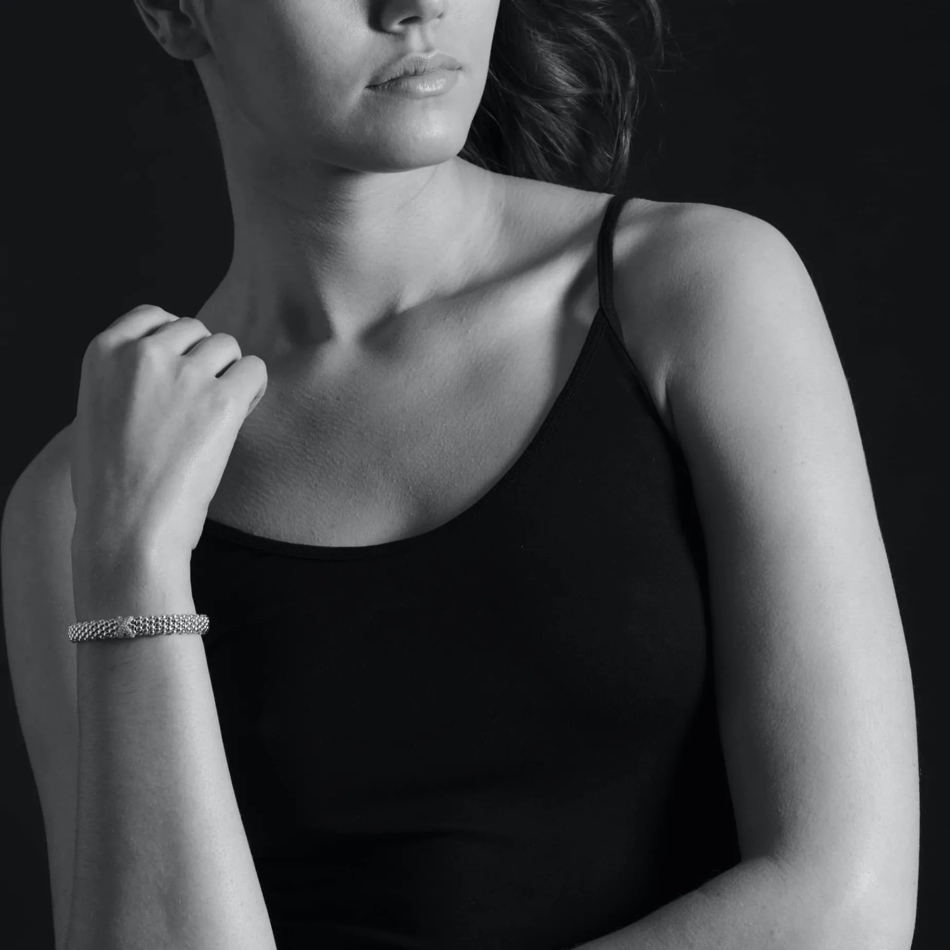 A Single Diamond X Station Set In 18K Gold Wraps This Signature Sterling Silver Caviar Beaded Bracelet. Lagos Diamonds Are The Highest Quality Natural Stones.
