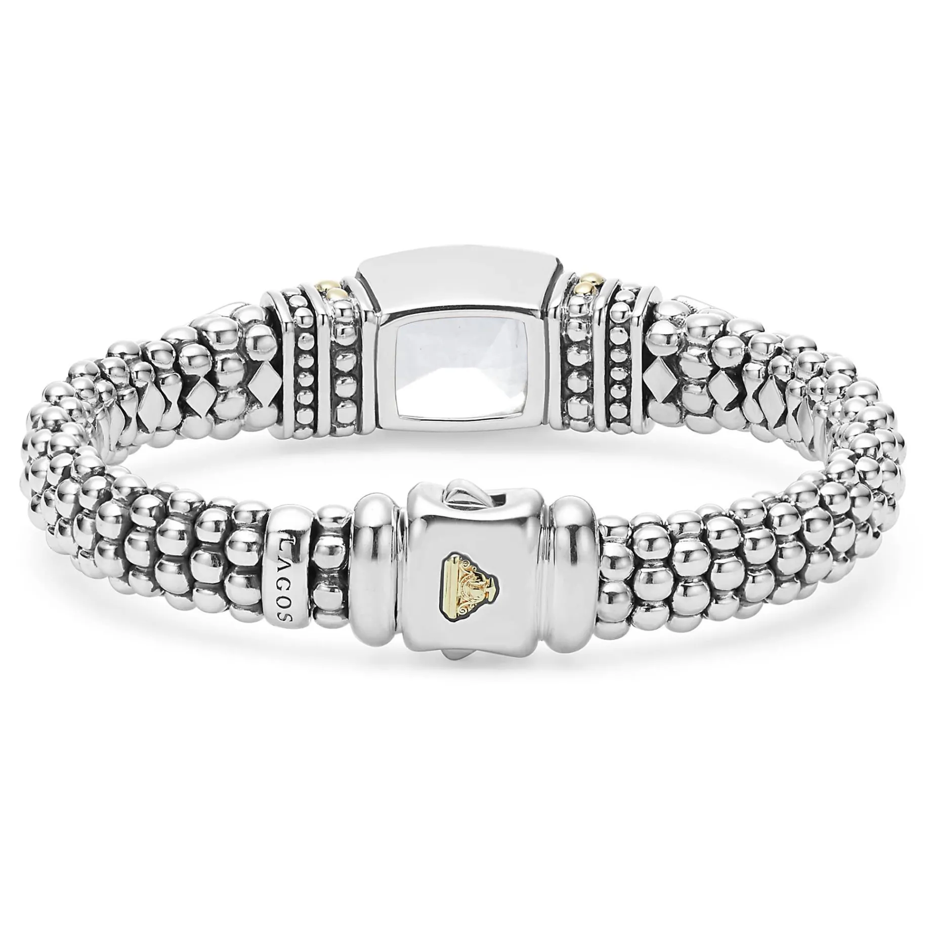 White Topaz Bezel-Set Gemstone And Sterling Silver Caviar Beading With 18K Gold Detailing Forms This Bracelet.