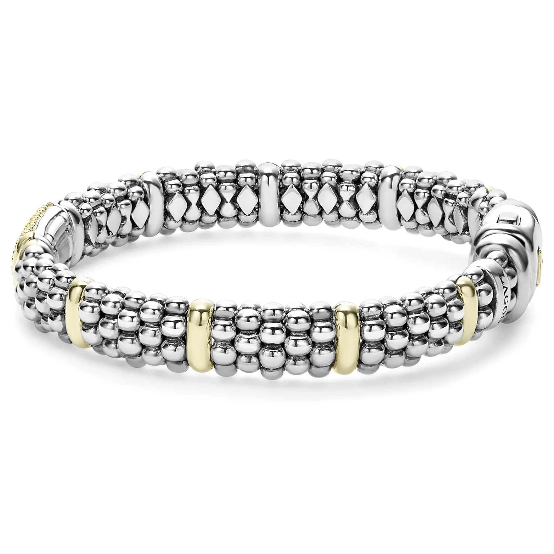 A Lagos Exclusive. Ten 18K Gold Stations Highlight This Sterling Silver Caviar Beaded Bracelet With A Pavé Station Of Yellow Sapphire Gemstones.