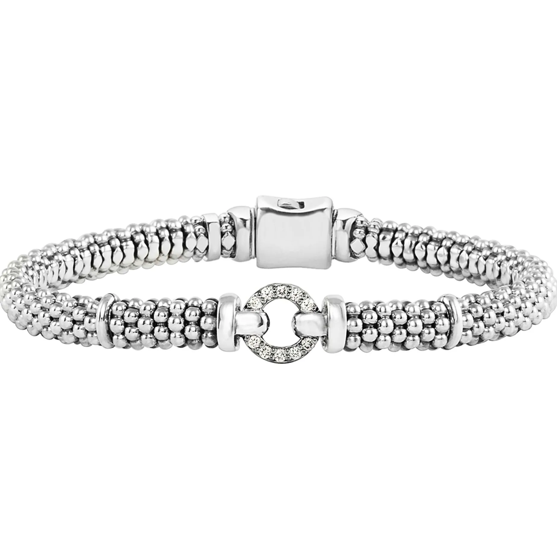 - Diamond In A Circle Motif With Sterling Silver Caviar Beading Forms This Bracelet. Set Includes Size Medium.